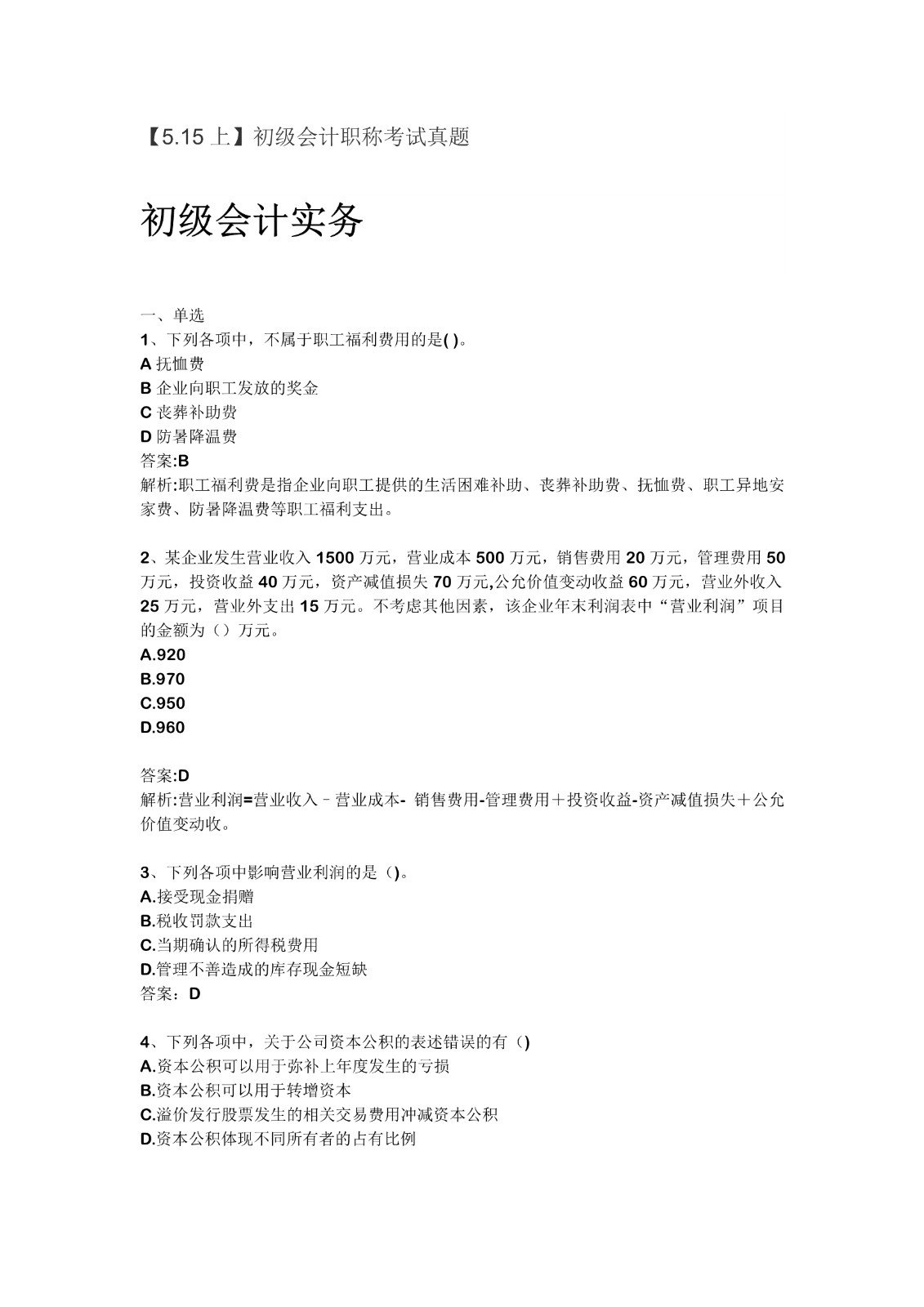2021年初级会计职称5.15日上午考试真题(回忆版)