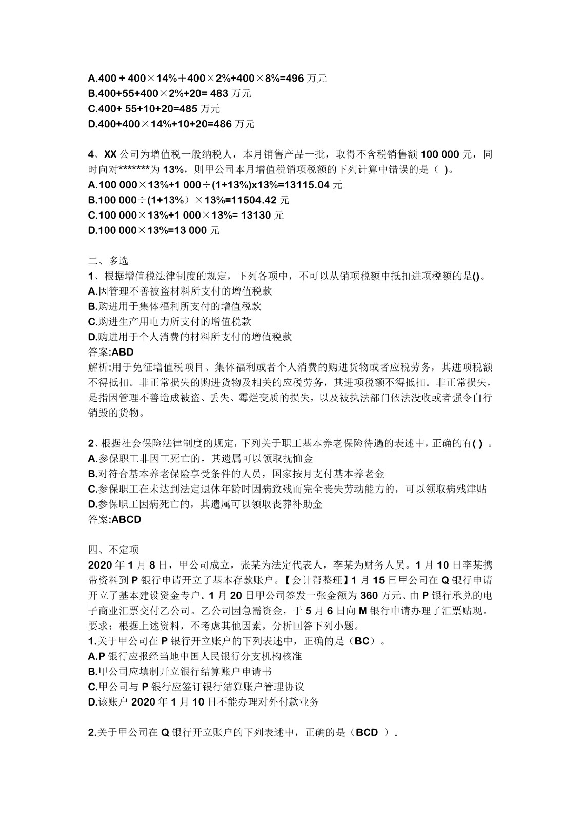 2021初级会计职称5.15日下午考试真题(回忆版)