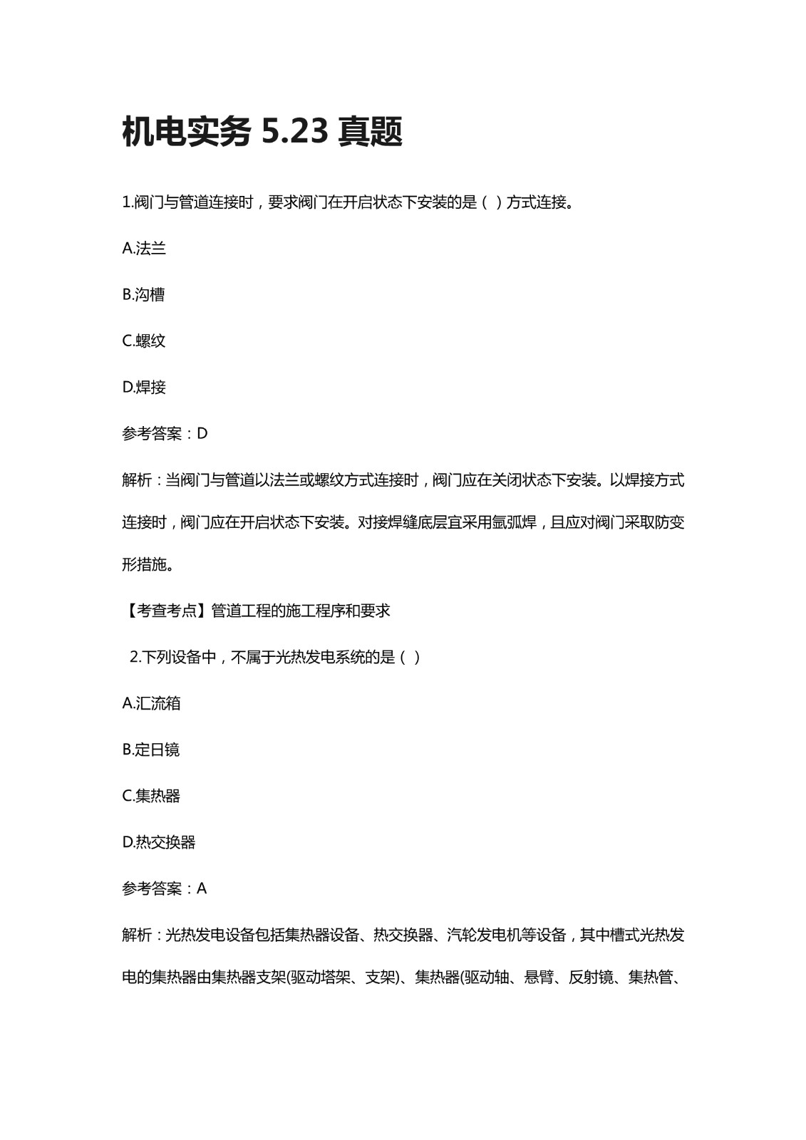 2021二级建造师考试5月23日《机电》真题