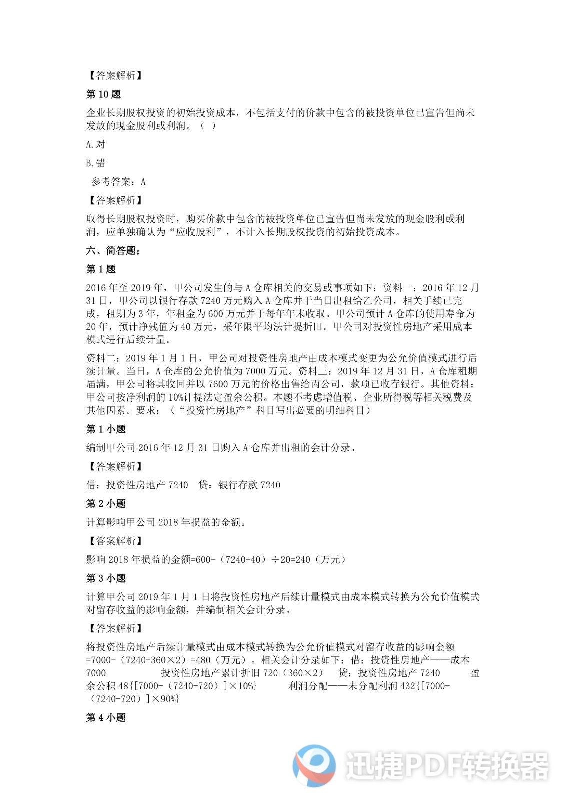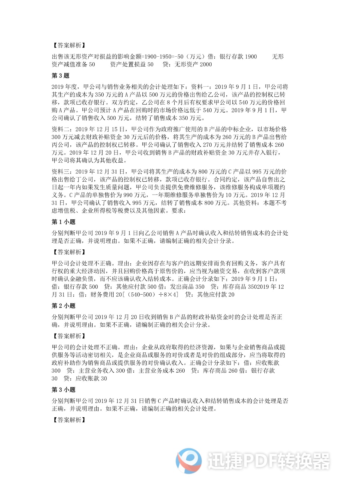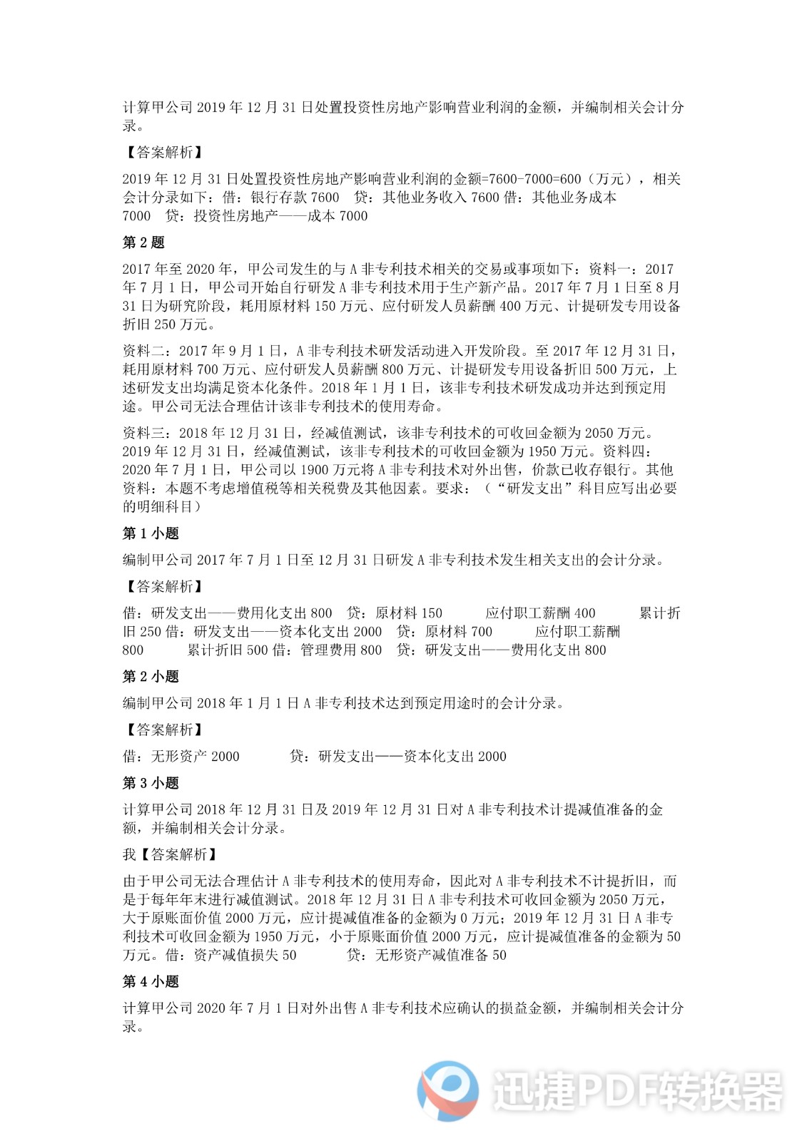 2020中级会计《会计实务》考试真题二