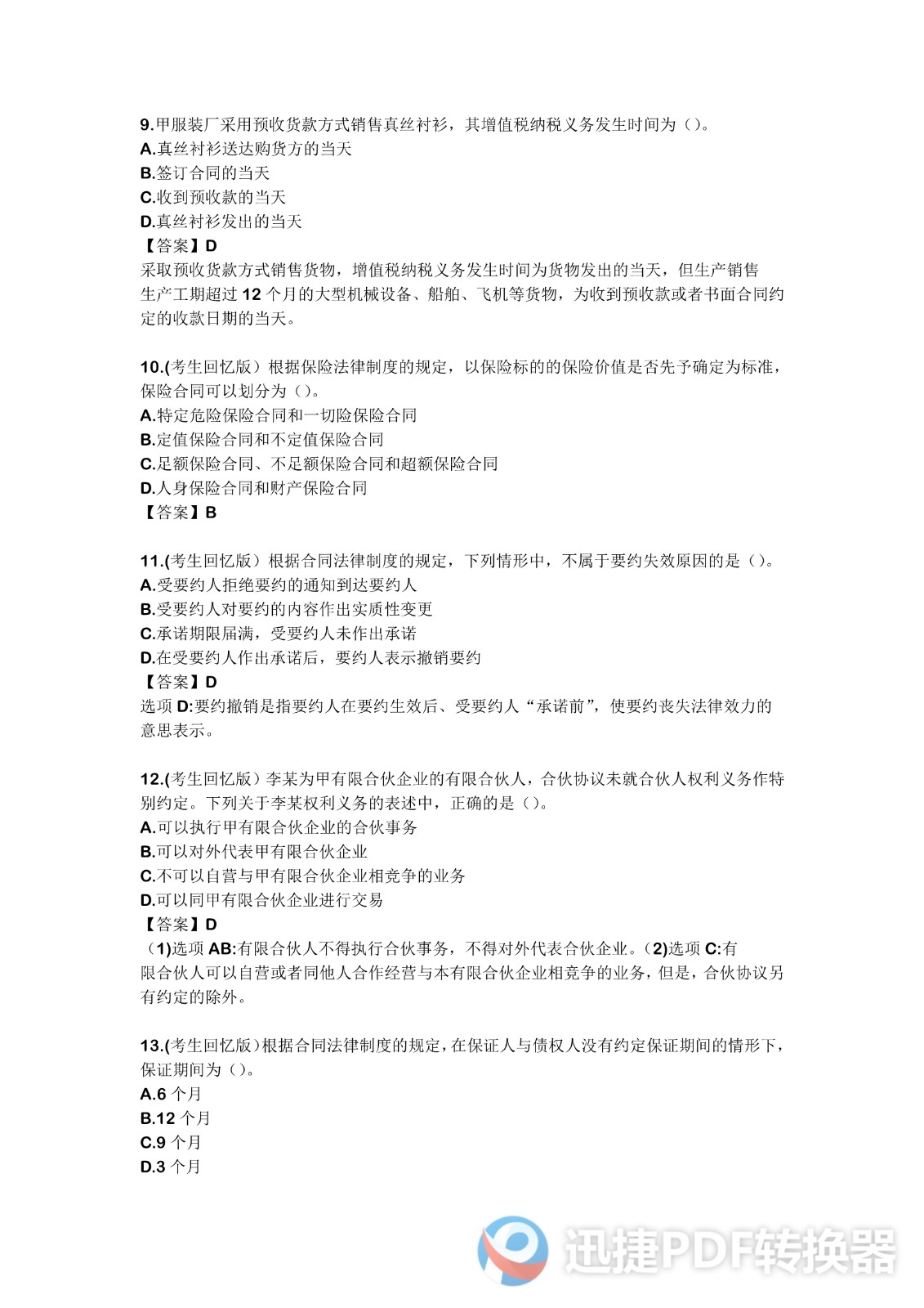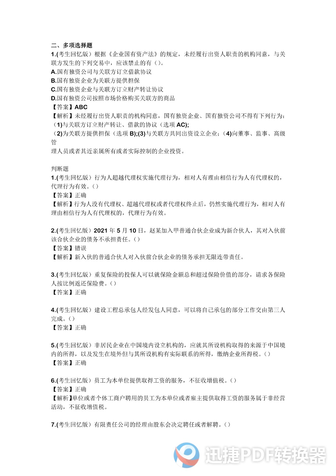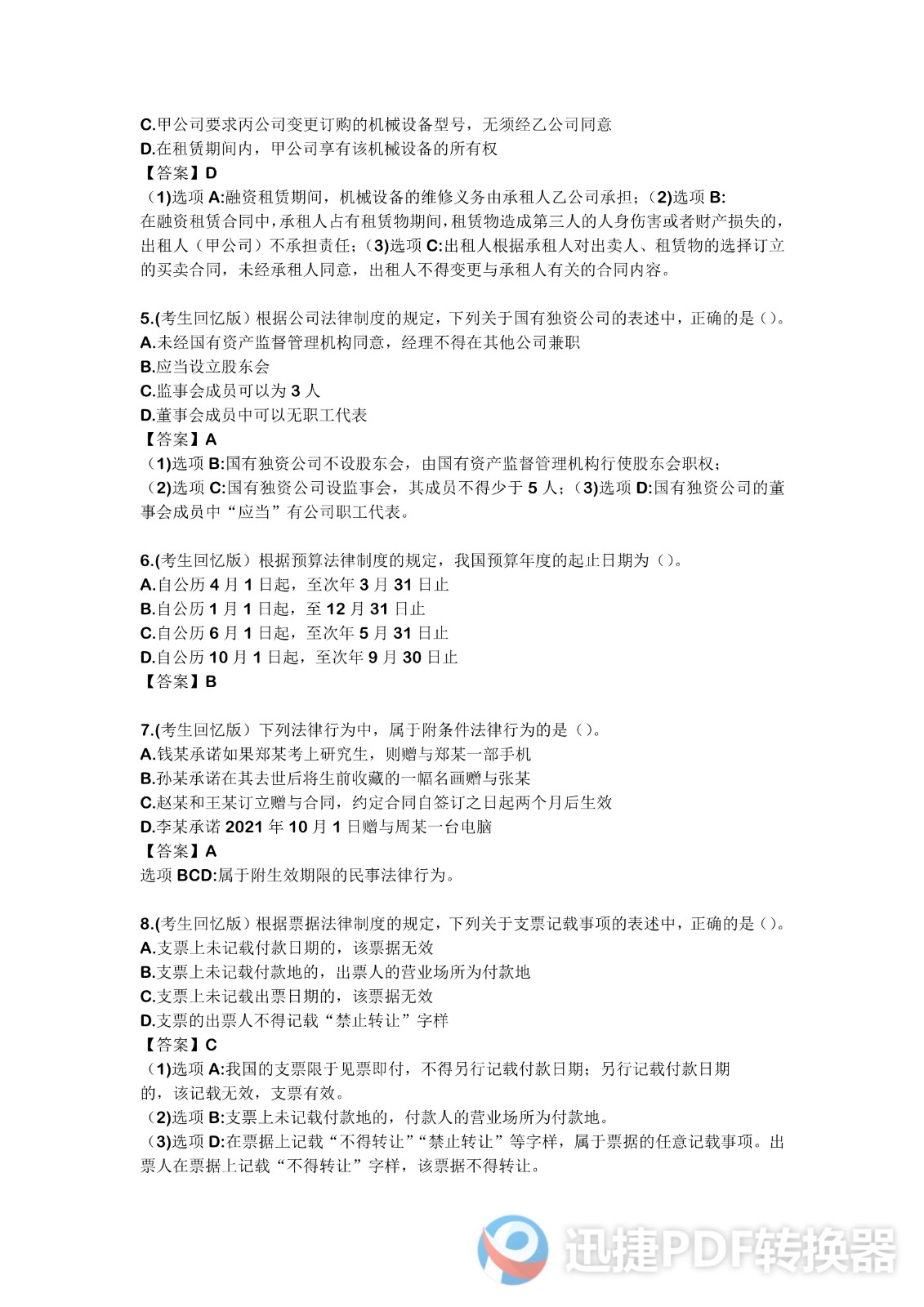 2021中级会计《经济法》考试真题回忆版(9.5)