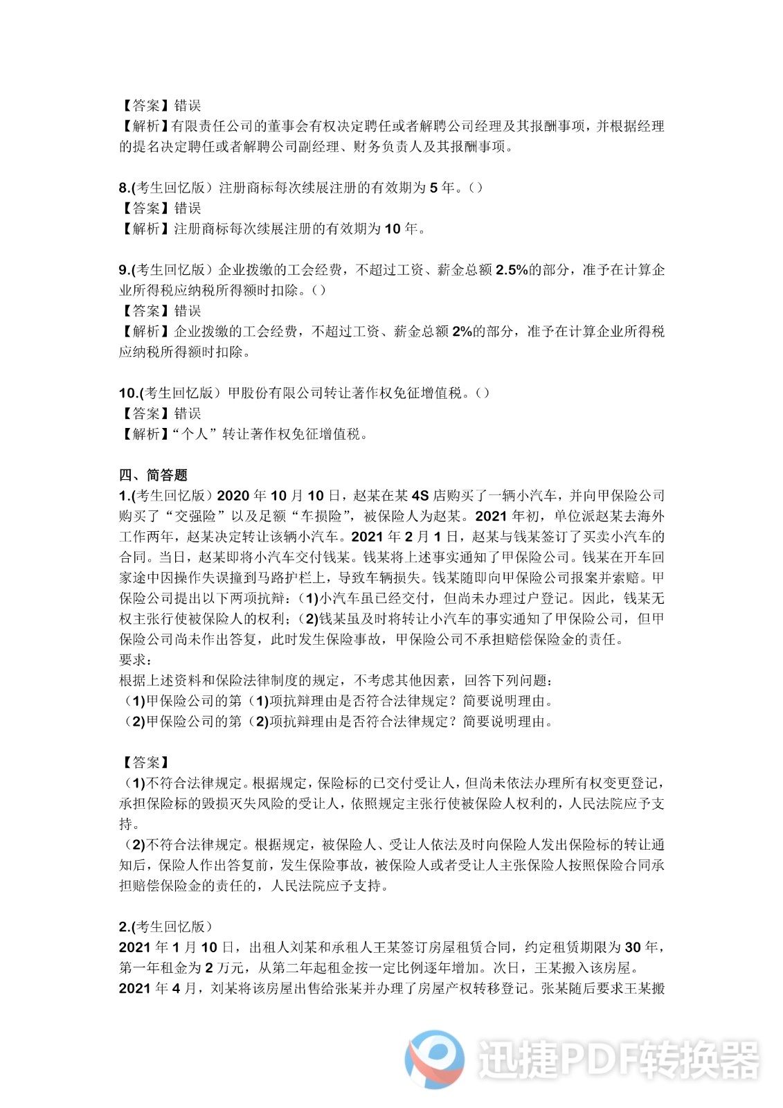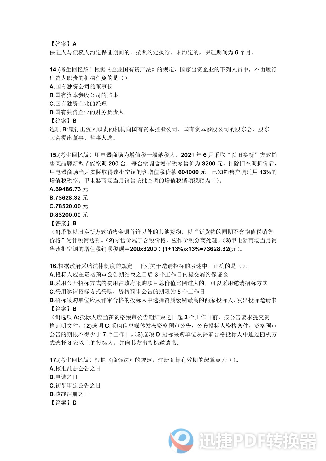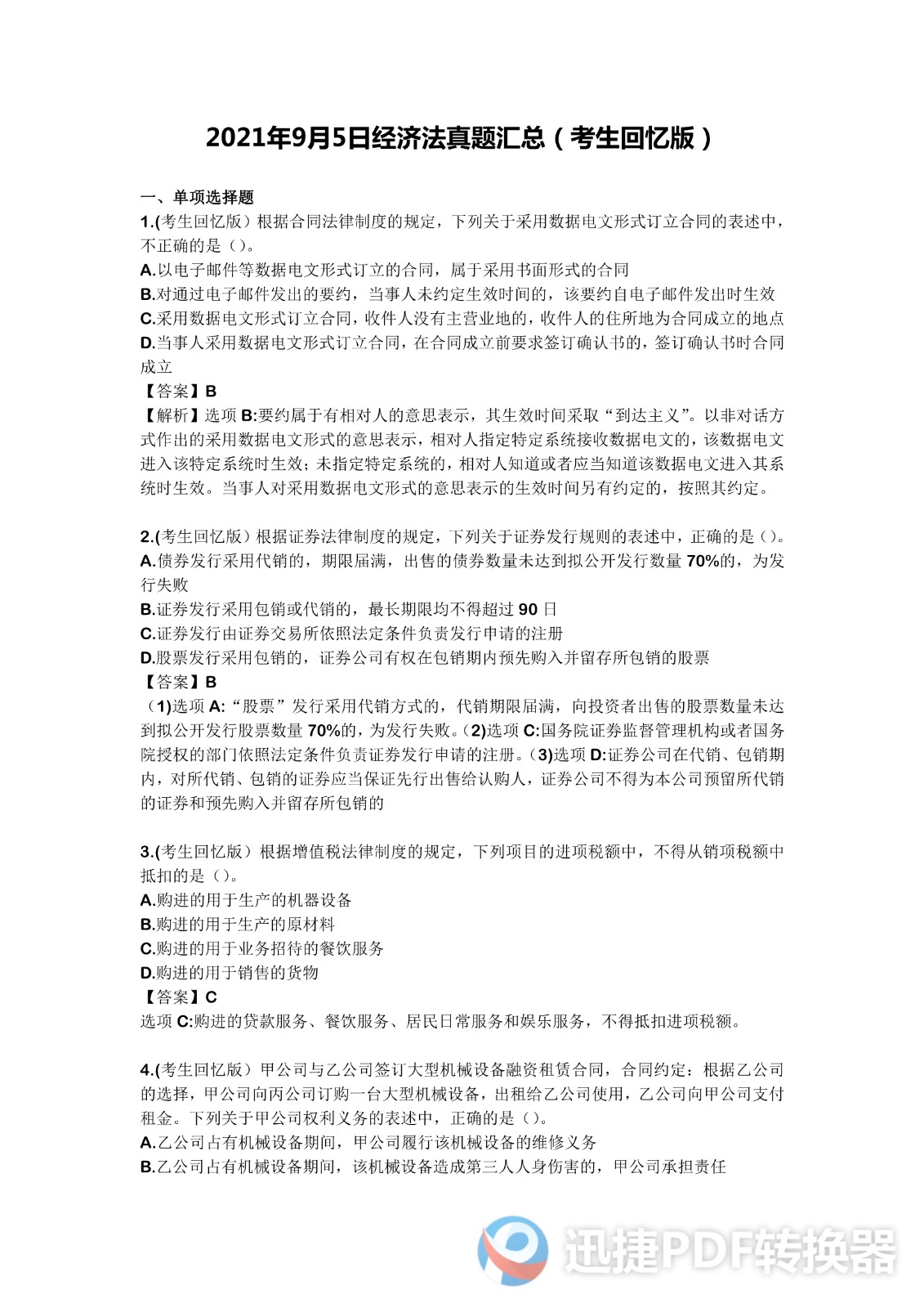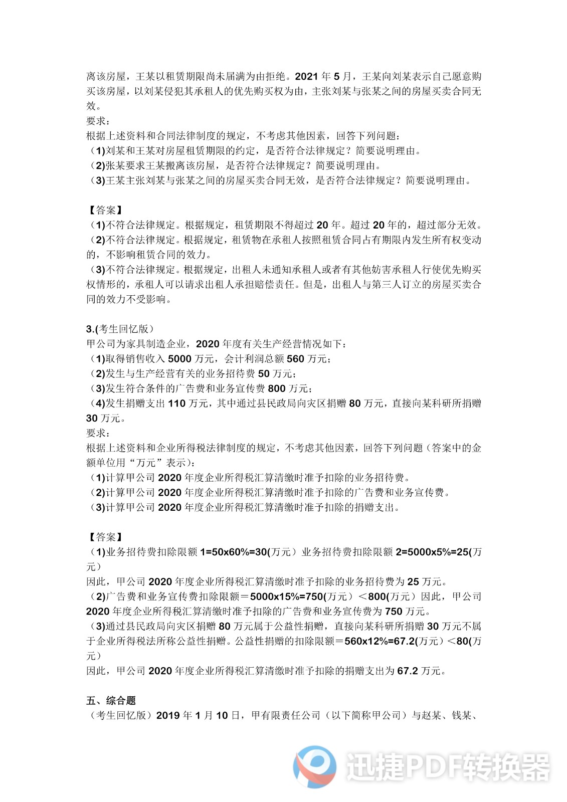 2021中级会计《经济法》考试真题回忆版(9.5)