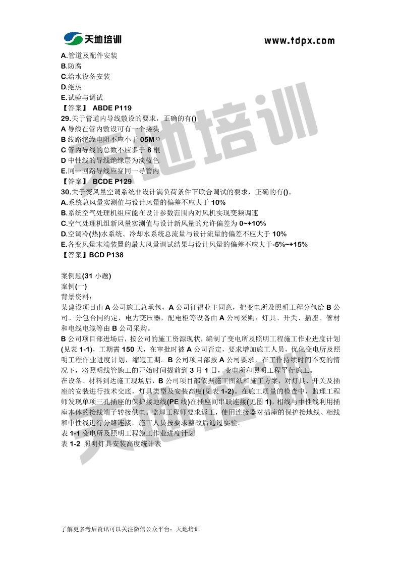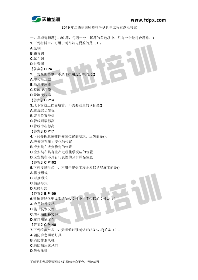2019二级建造师资格考试机电工程真题及答案