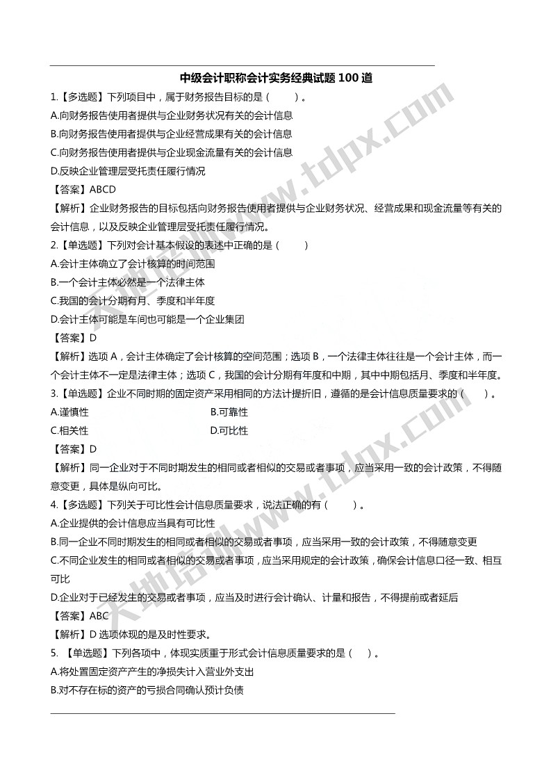 距离2020中级会计考试只剩下一个月的时间,在最后的冲刺阶段一定要让自己的复习有效率。不能再题海战术,做题要有针对性。天地培训特地分析了近几年来的中级考试常考的知识点,从而整理了一套考前必刷经典100题。报考中级的小伙伴一定不能错过。