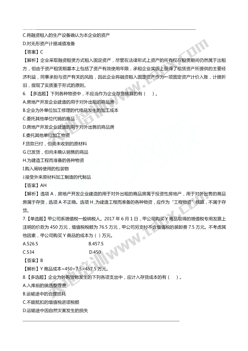 2020中级会计实务考前必刷100题