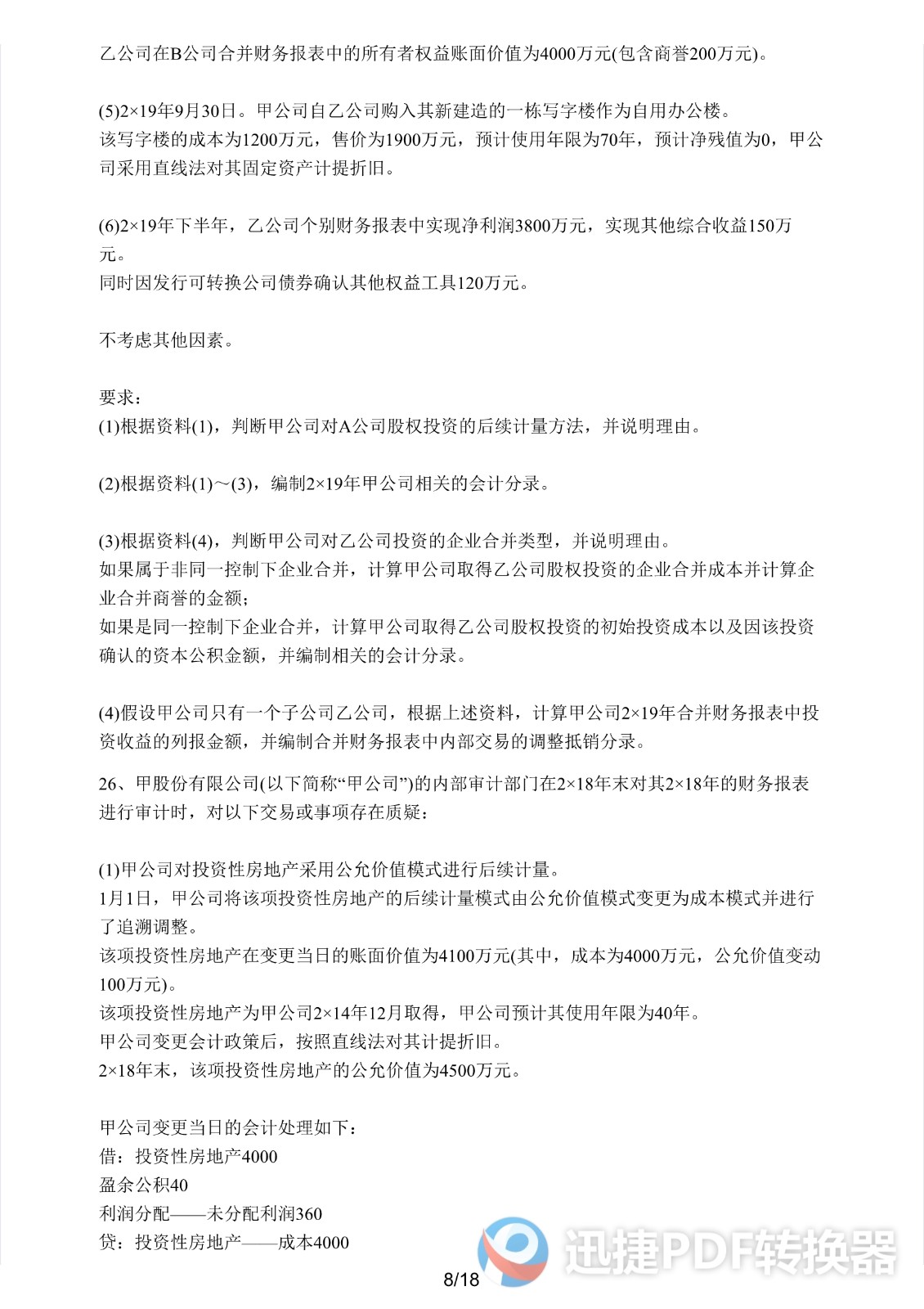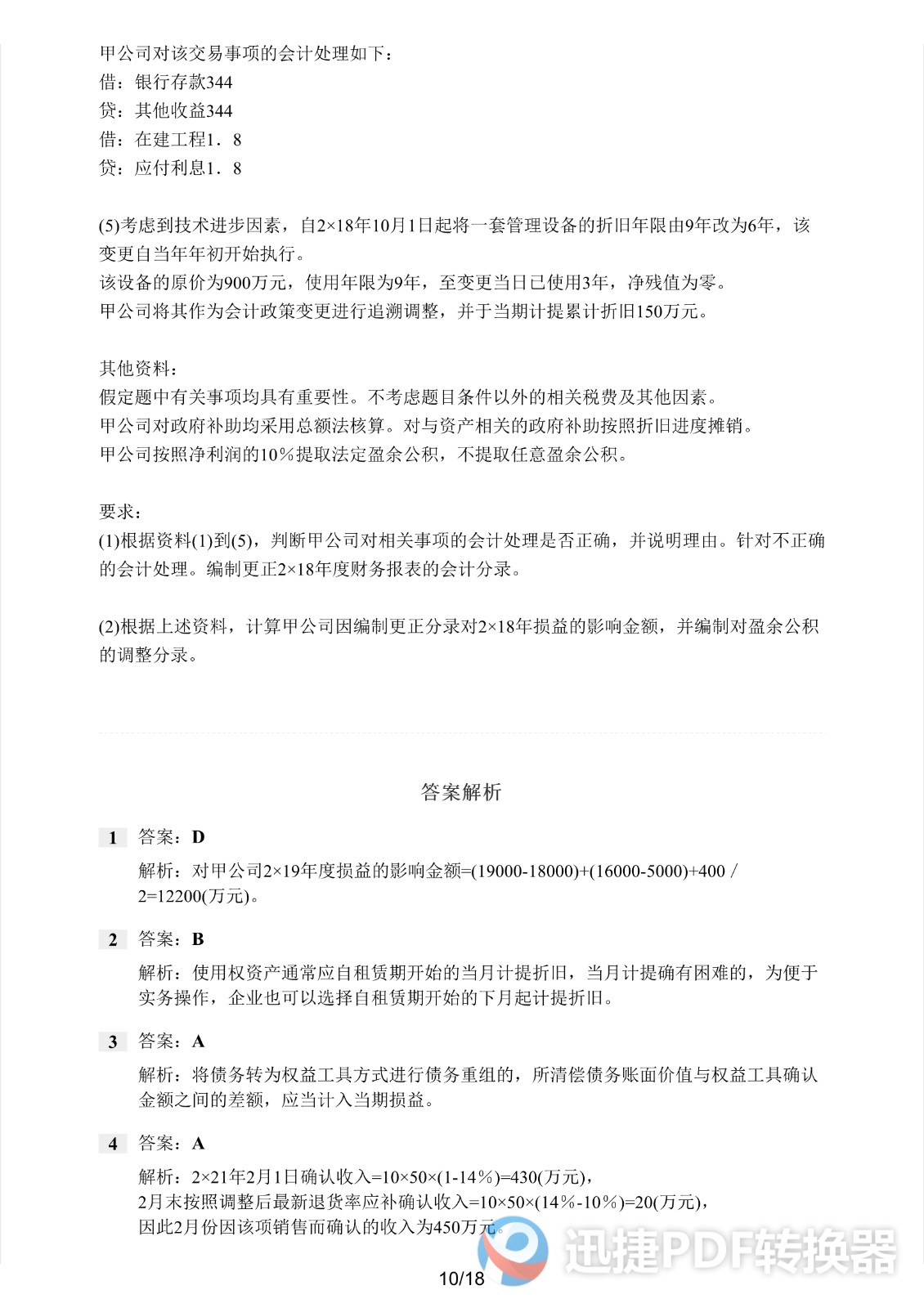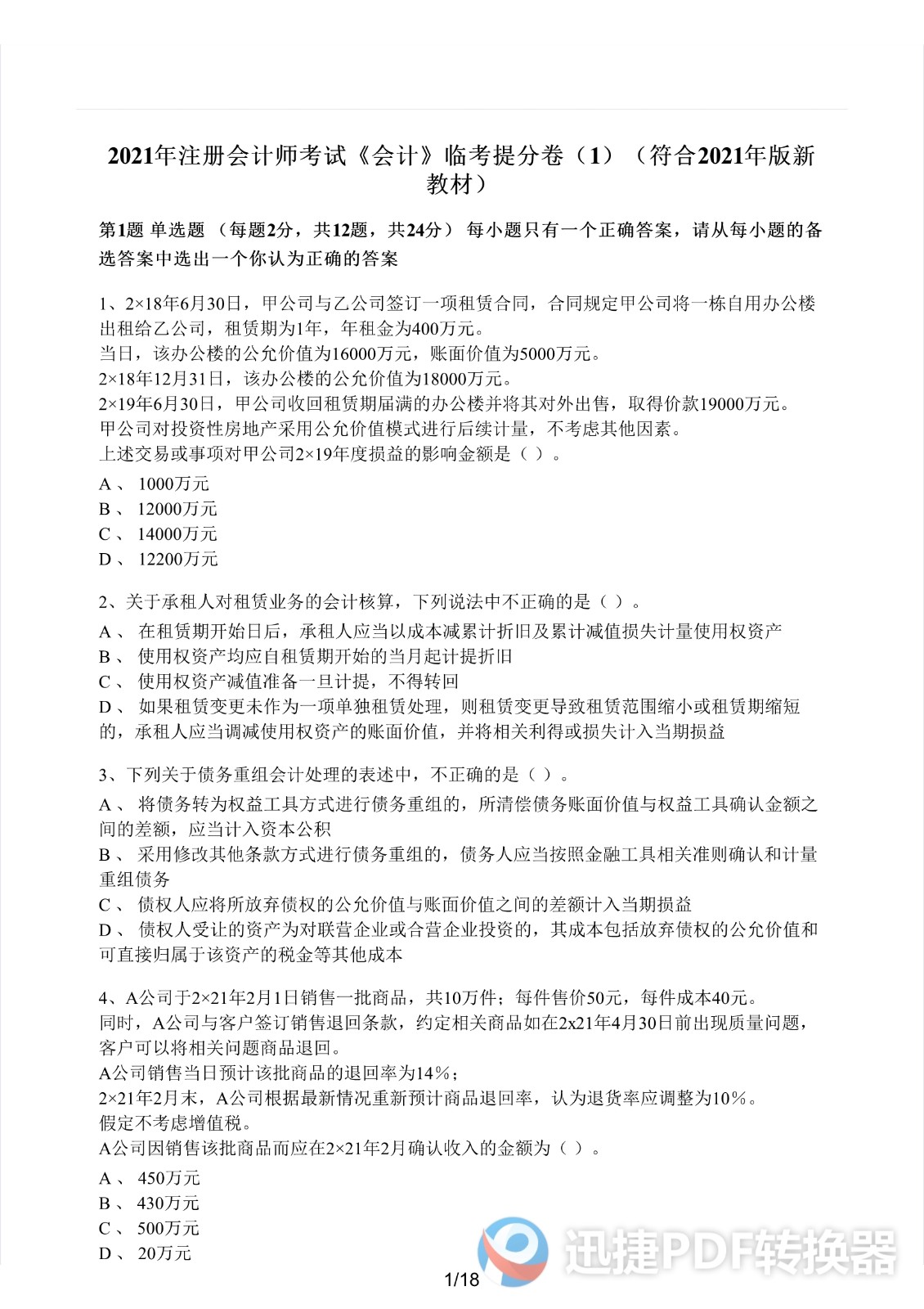 2021注册会计师《会计》考前模拟一