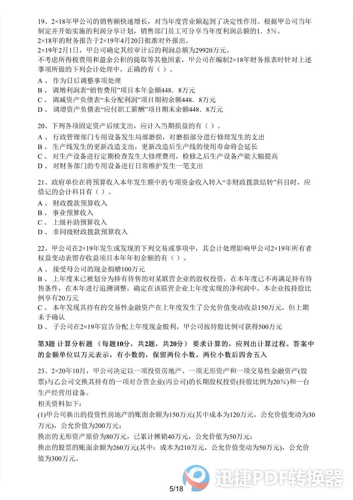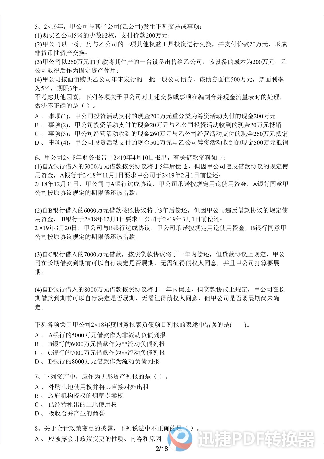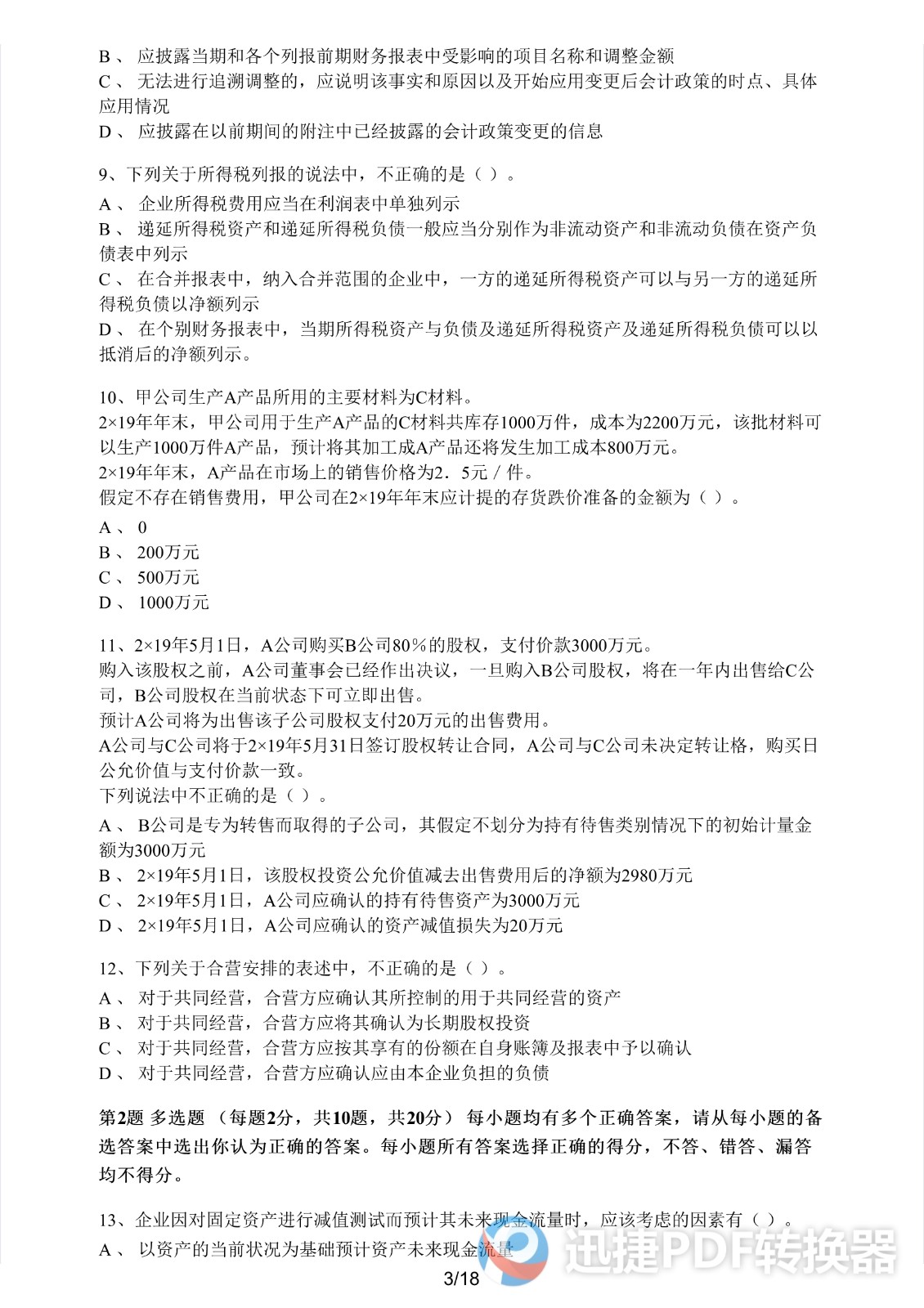 2021注册会计师《会计》考前模拟一