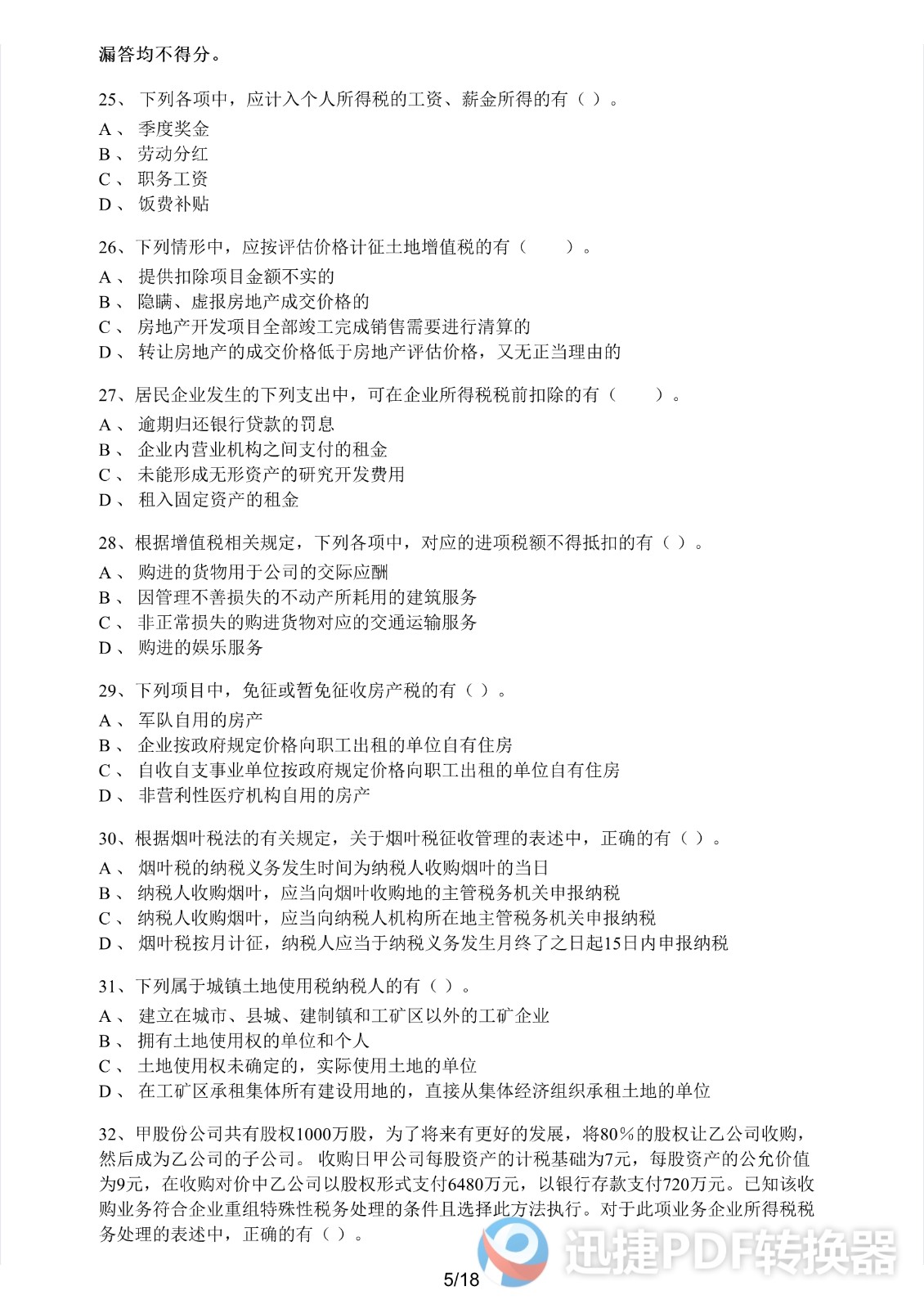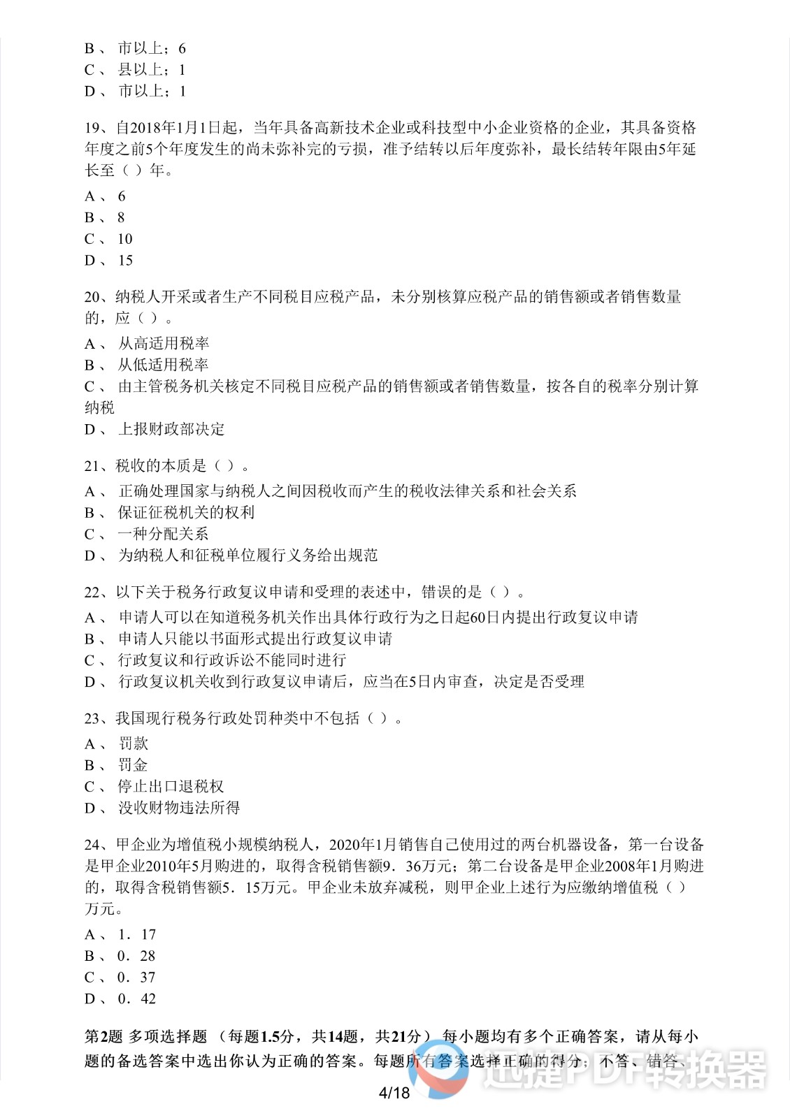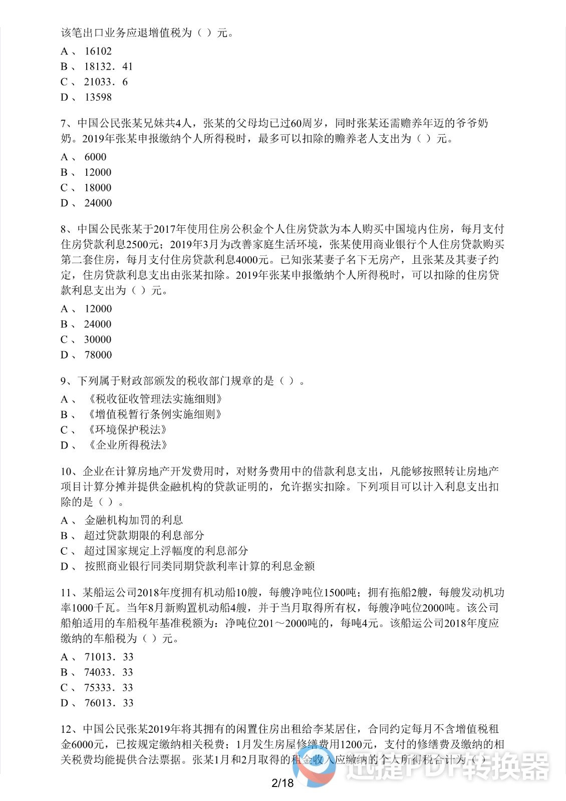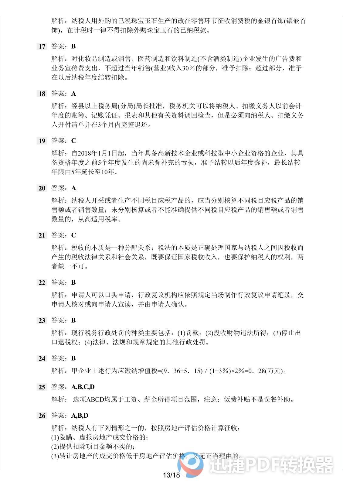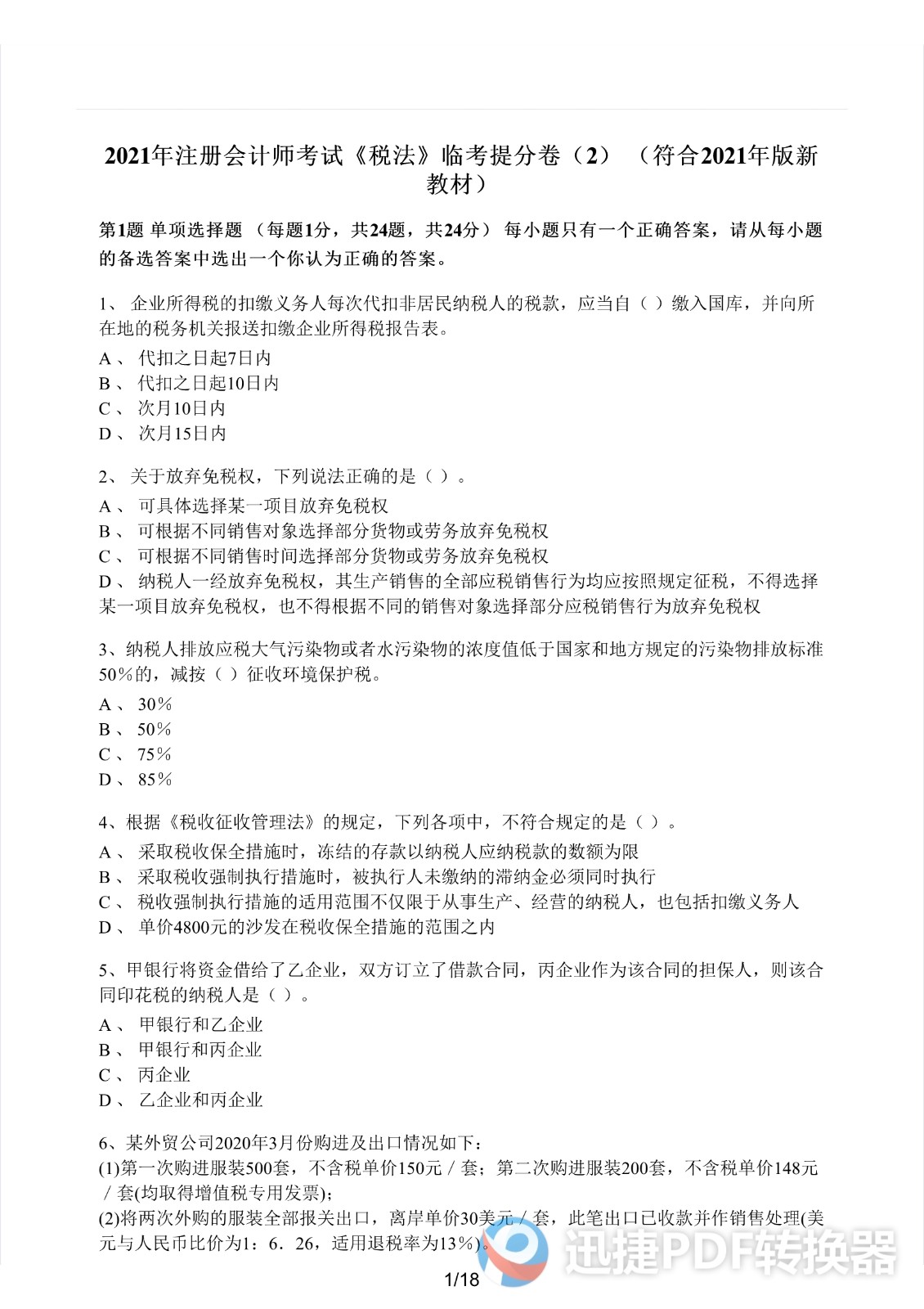 2021注册会计师《税法》考前模拟二