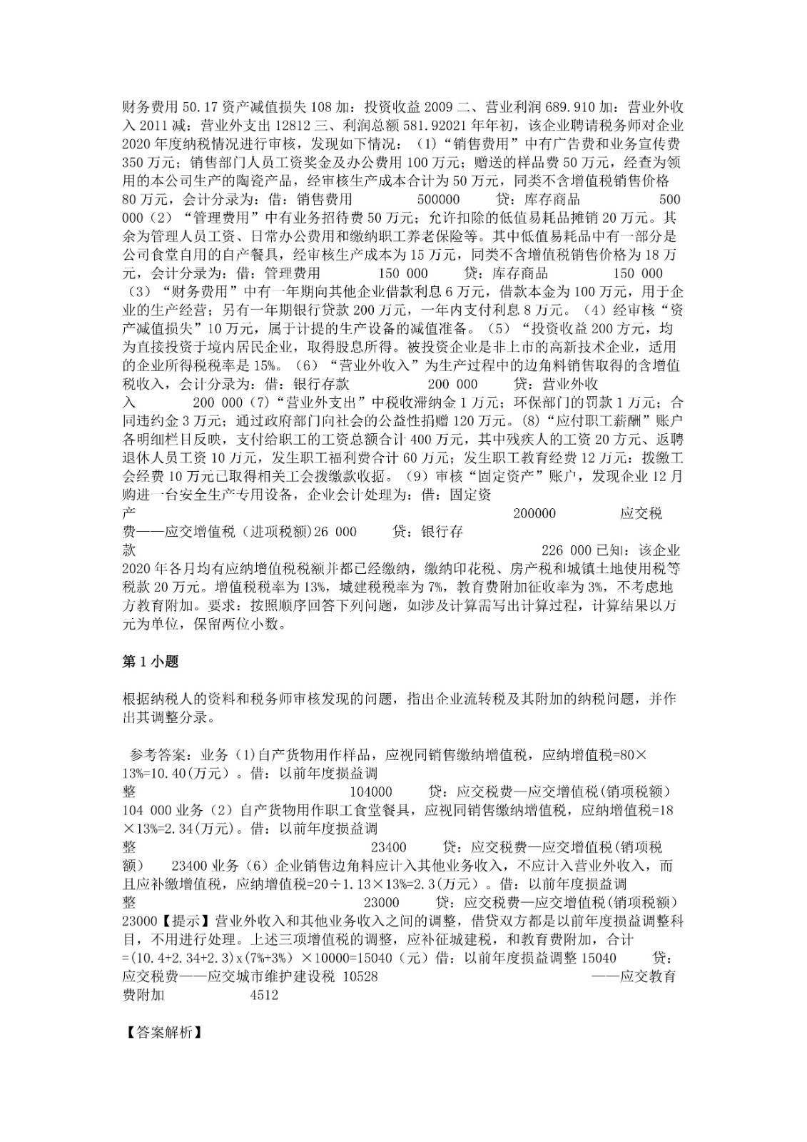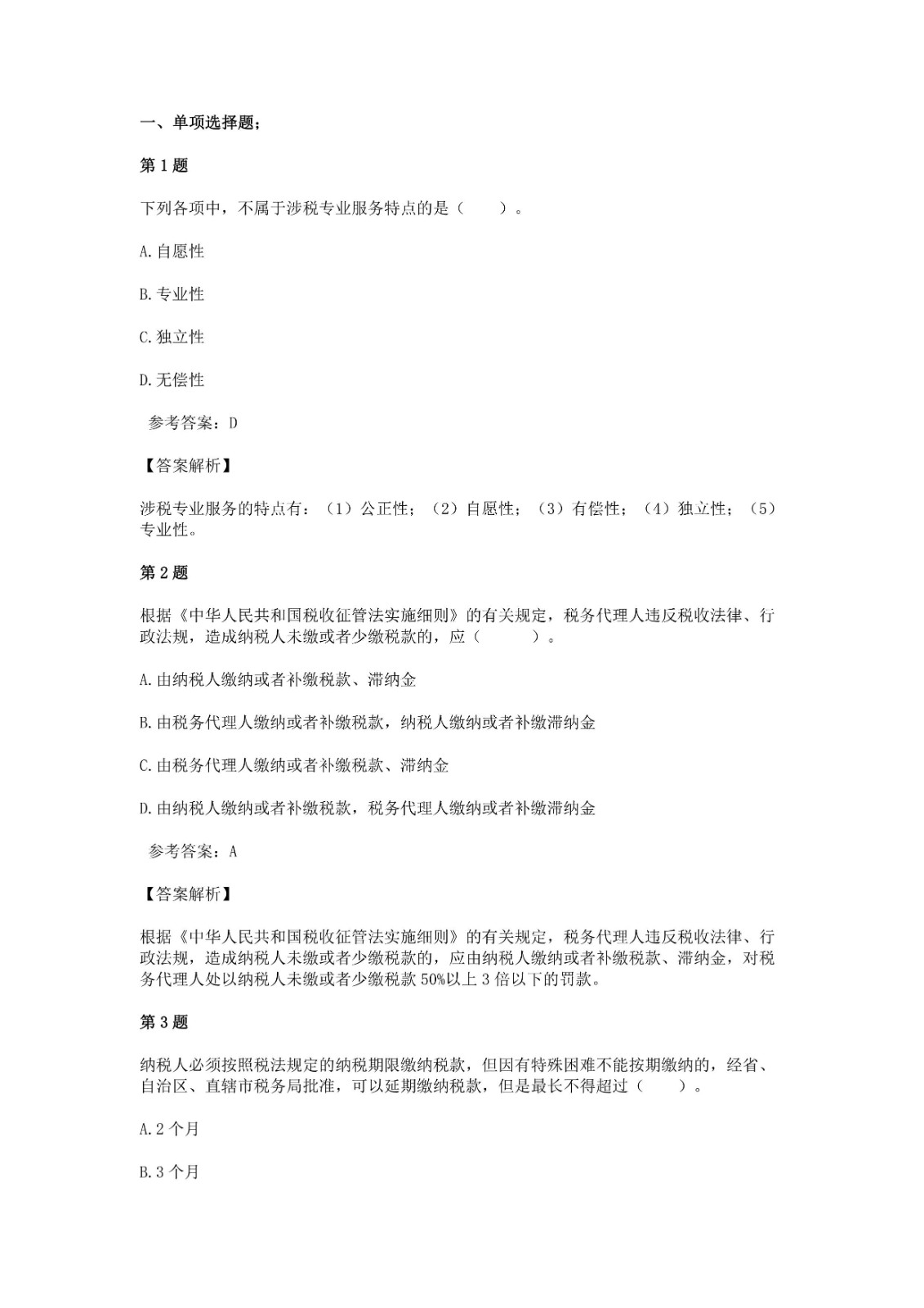 2021税务师《涉税服务实务》考前模拟(一)
