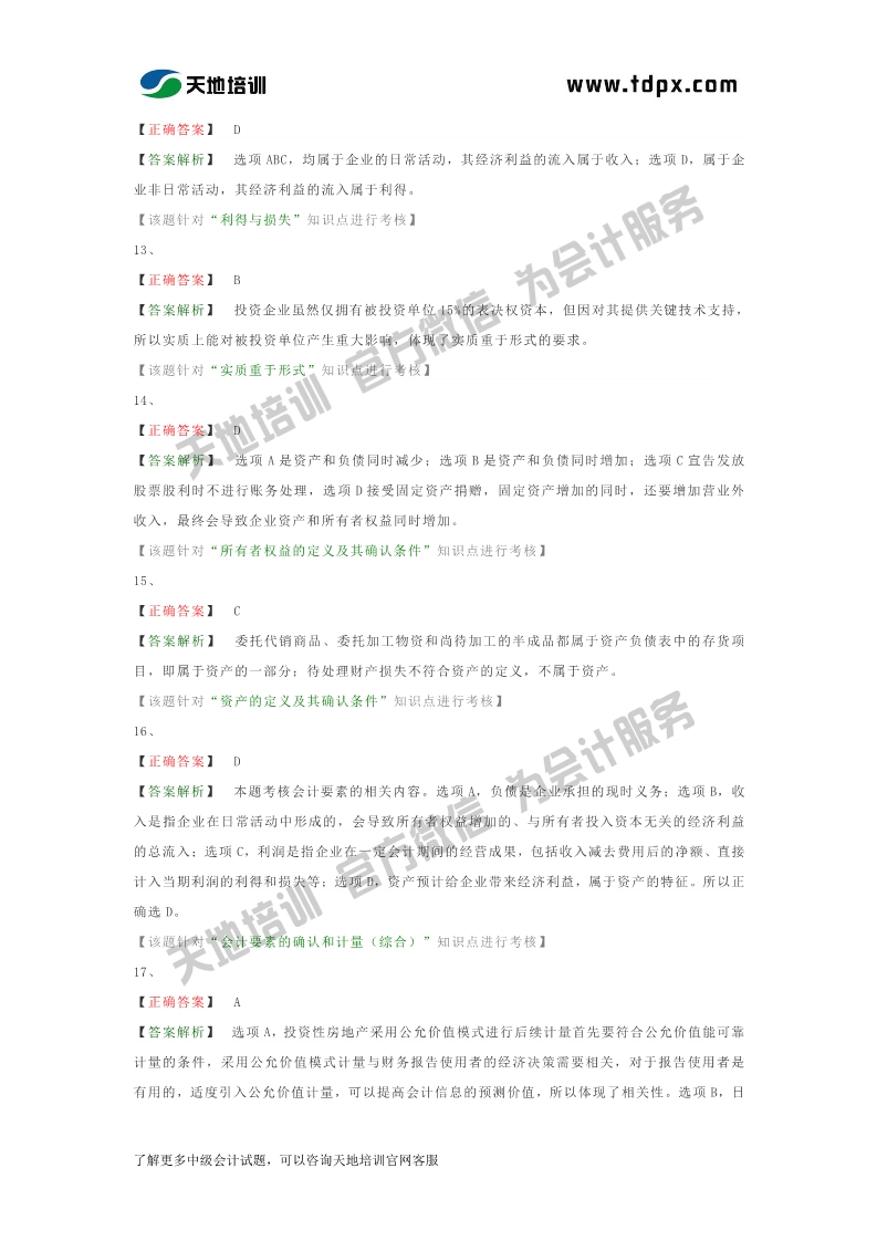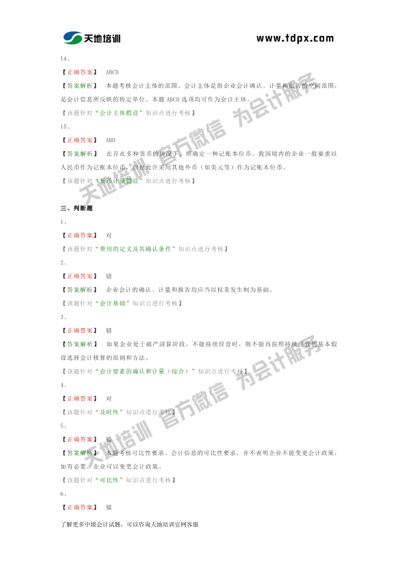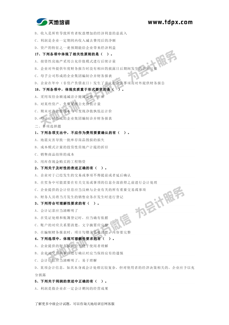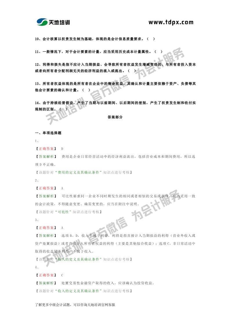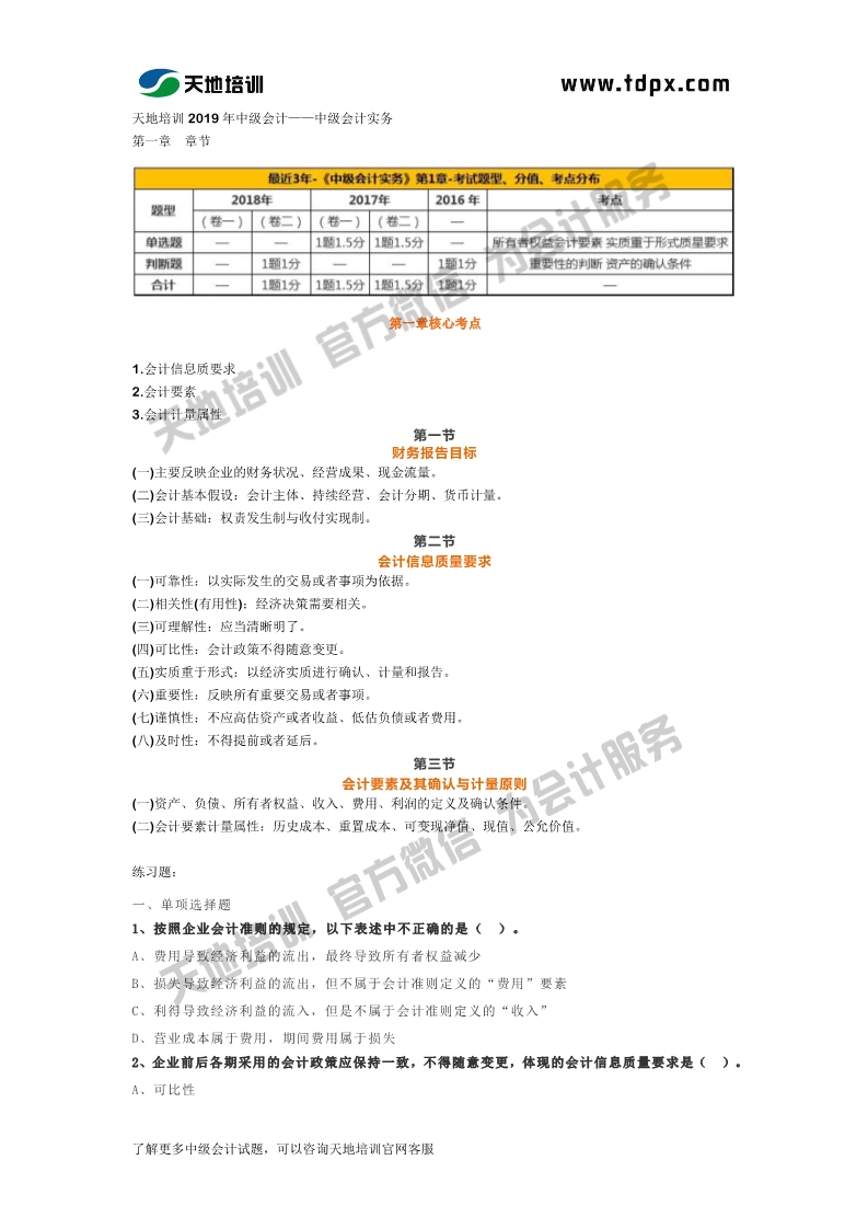 天地培训2019年中级会计——中级会计实务第一章考点习题