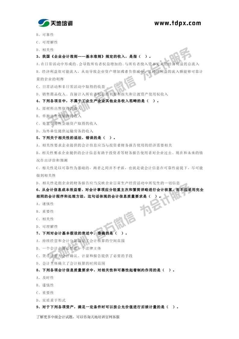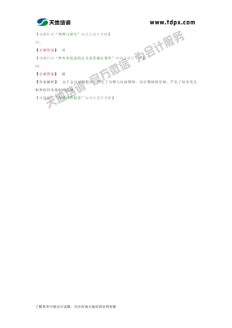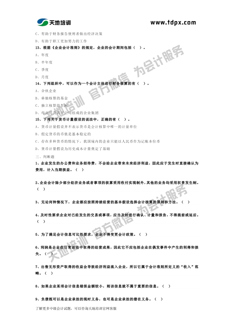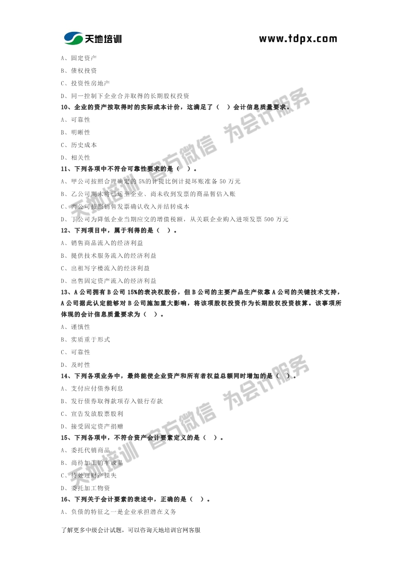 天地培训2019年中级会计——中级会计实务第一章考点习题