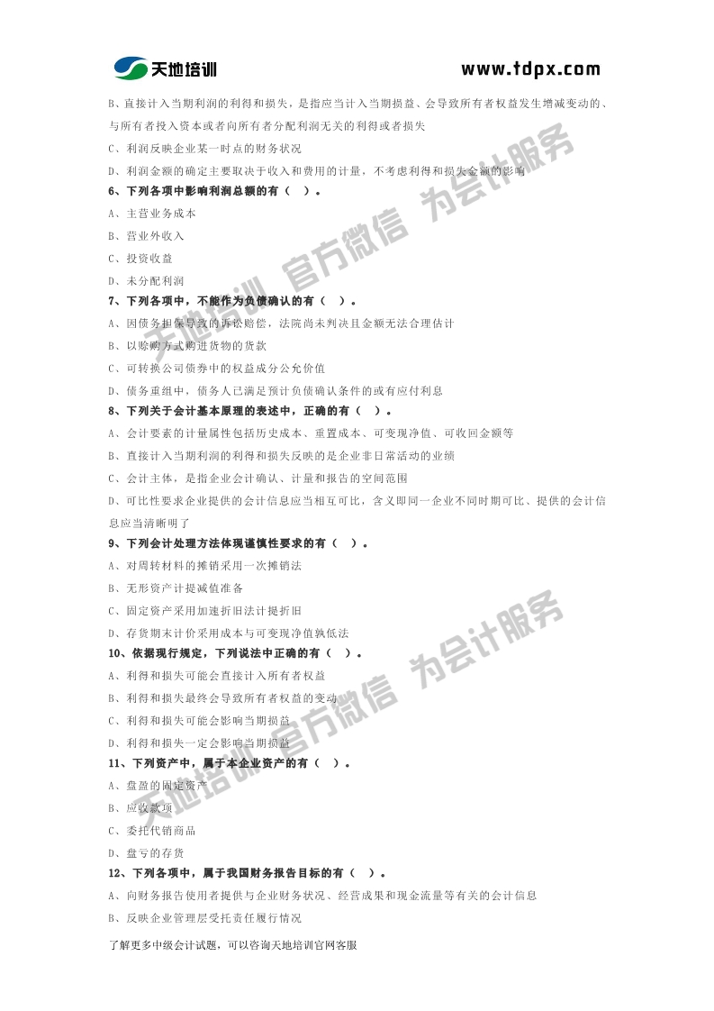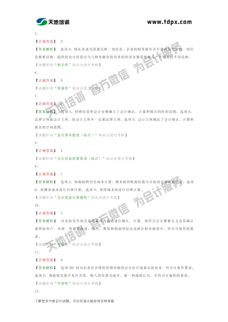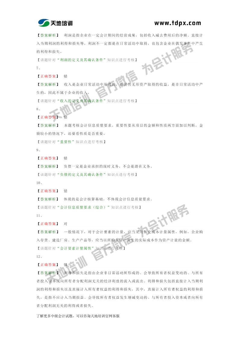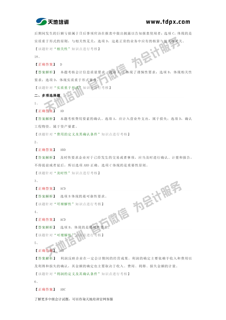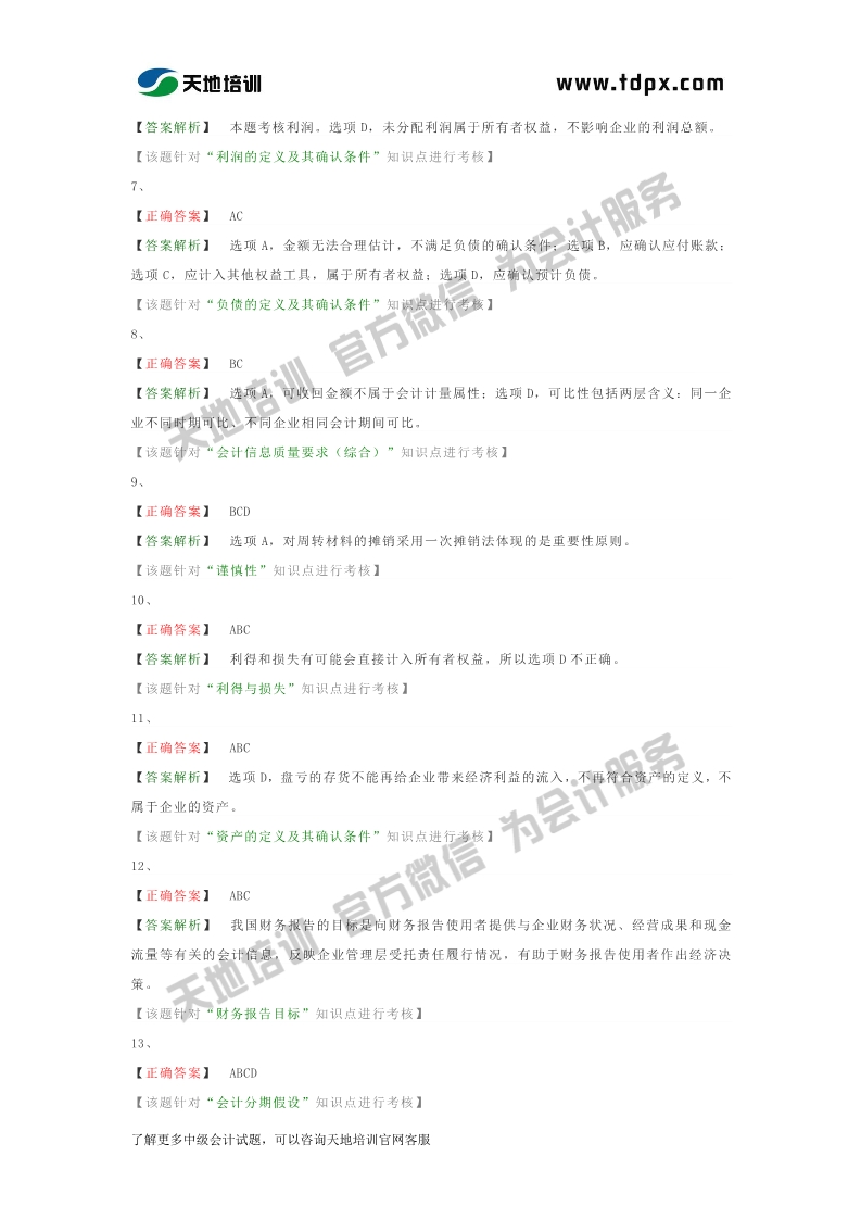 天地培训2019年中级会计——中级会计实务第一章考点习题