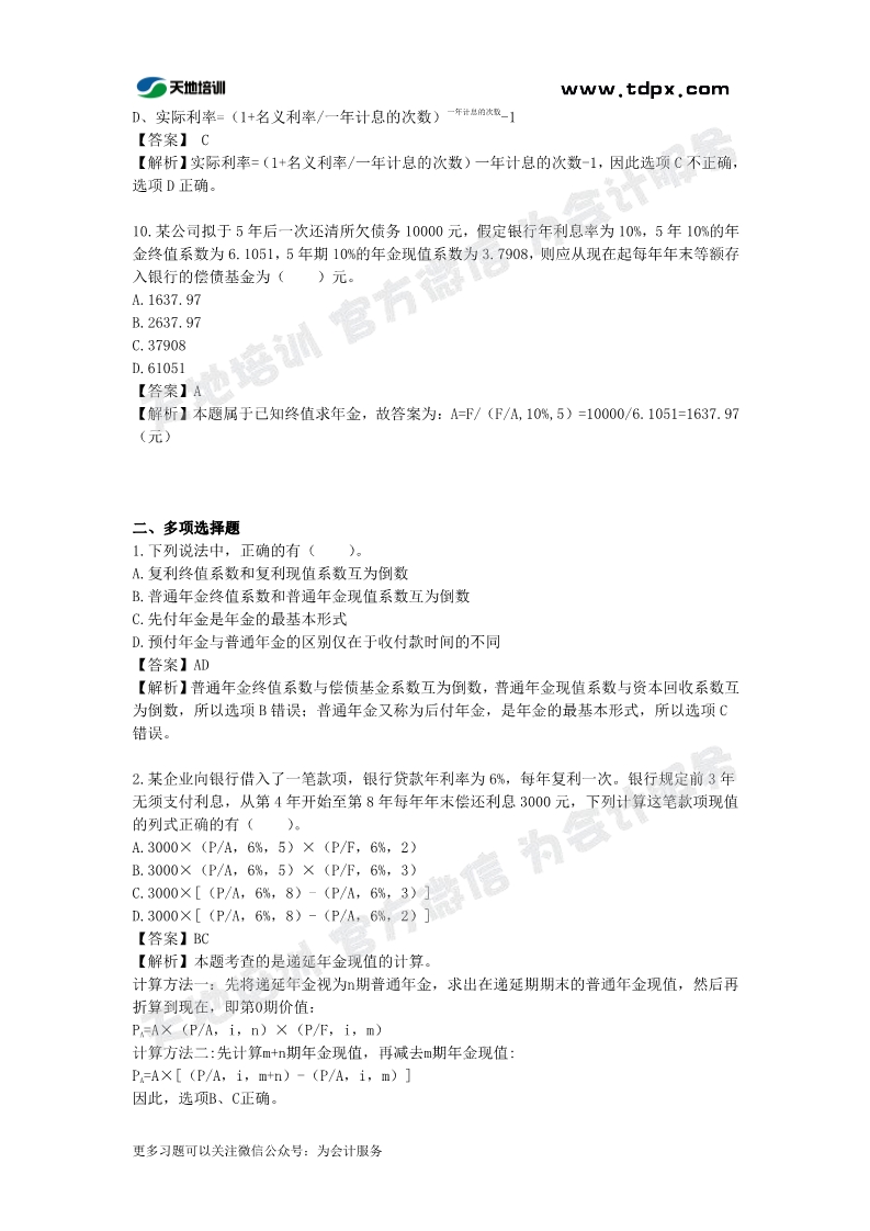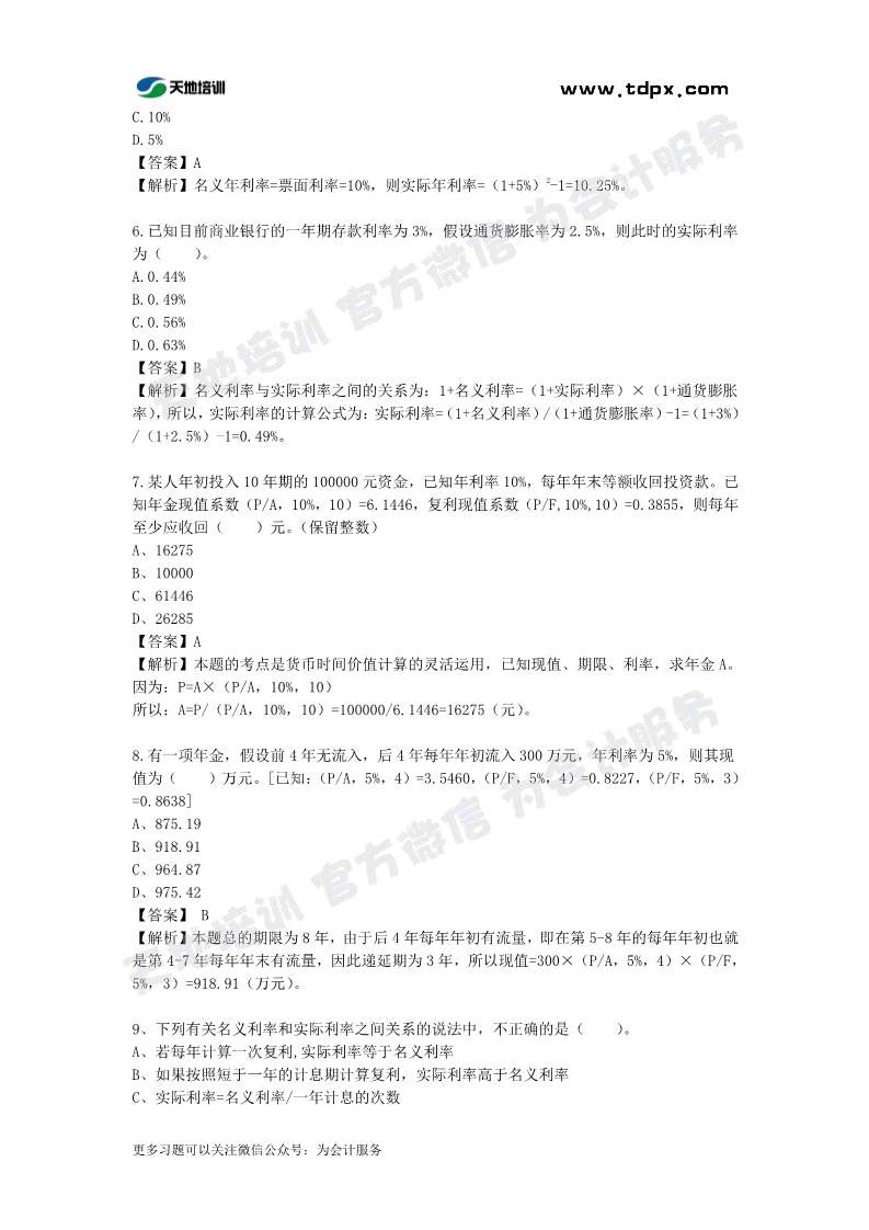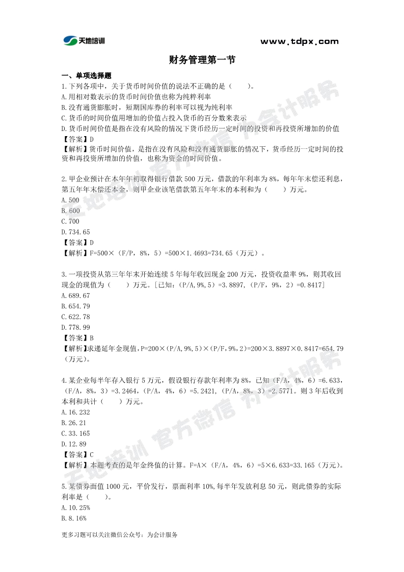 2019年天地培训-中级会计财务管理第二章第一节考点习题